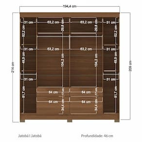 Guarda Roupa Casal 6 portas Guarapuava com espelho Jatobá - Santos Andirá
