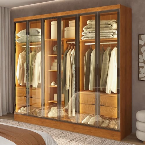 Com 6 portas e amplo espaço interno, o Roupeiro GR Atenas é ideal para quem precisa de um móvel espaçoso, elegante e altamente funcional, tornando o quarto mais organizado e visualmente sofisticado.
