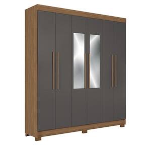 Guarda Roupa Casal 6 portas Toledo com espelho Jatobá Grafite - Santos Andirá