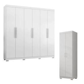 Guarda Roupa Casal 6000 e Armário Multiuso 6020 Branco com Pés Reto News – Araplac
