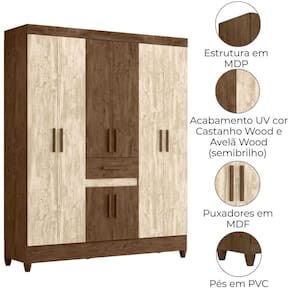 Projetado para atender às necessidades do dia a dia, o Guarda-Roupa Casal Portugal oferece espaço e modernidade. Estrutura em MDP (15/ 12 mm) e acabamento em pintura UV. Composto por portas com dobradiças metálicas, cabideiro interno (alumínio), prateleiras e gavetas com corrediças metálicas. Produto com dupla opção de montagem: pés em PVC ou sapatas plásticas (2 mm) conforme preferência do cliente. Este produto será entregue em 02 volumes.