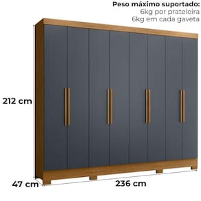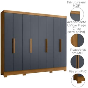 Com design funcional e excelente aproveitamento interno, o Guarda-Roupa Casal Diplomata é a escolha ideal para quem busca organização e estilo. Estrutura em MDP (15/ 12 mm) e acabamento em pintura UV. Composto por portas com dobradiças metálicas, cabideiro interno (alumínio), gavetas com corrediças metálicas e prateleiras. Produto com dupla opção de montagem: pés em PVC ou sapatas plásticas (2 mm) conforme preferência do cliente. Este produto será entregue em 03 volumes.