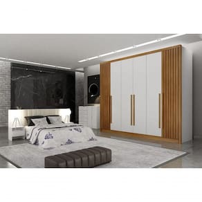 Guarda Roupa Casal 6 Portas 8 Gavetas - Himalaia Ripado-Branco - Móveis Horizonte