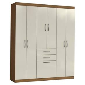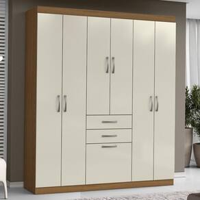 Guarda Roupa Casal Cancun, design espaçoso e resistente para transformar seu quarto. Estrutura em MDP de 12 mm e acabamento em Verniz. Possui portas com dobradiças metálicas, gavetas com corrediças telescópicas, amplas prateleiras internas, cabideiro em madeira com revestimento PVC e puxadores em plástico. Este produto será entregue em 2 volumes.