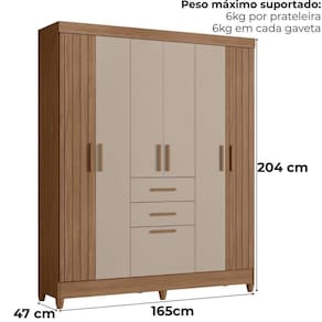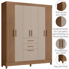 Desenvolvido para facilitar sua rotina, o Guarda-Roupa Casal Malta traz design funcional e amplo espaço interno. Estrutura em MDP (15/ 12 mm) e acabamento em pintura UV. Composto por portas com dobradiças metálicas (laterais em MDF com detalhes frisados), prateleiras internas, cabideiro interno (alumínio) e gavetas com corrediças metálicas. Produto com dupla opção de montagem: pés em PVC ou sapatas plásticas (2 mm) conforme preferência do cliente. Este produto será entregue em 03 volumes.