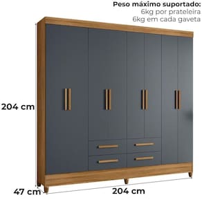 Desenvolvido para facilitar sua rotina, o Guarda-Roupa Casal Flórida traz design funcional e amplo espaço interno. Estrutura em MDP (15/12 mm) e acabamento em pintura UV. Composto por portas com dobradiças metálicas, prateleiras internas, cabideiro interno (alumínio) e gavetas com corrediças telescópicas. Produto com dupla opção de montagem: pés em PVC ou sapatas plásticas (2 mm) conforme a preferência do cliente. Este produto será entregue em 04 volumes.