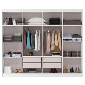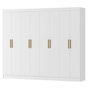 O O Guarda-Roupa com 8 Portas, combina design moderno e praticidade para oferecer a melhor organização para suas roupas e acessórios. Estrutura 100% MDP de 15mm (forros em MDP de 12mm), enquanto a pintura UV texturizada proporciona um acabamento resistente e elegante. Para maior durabilidade e facilidade no uso, conta com corrediças metálicas, que garantem um deslizamento suave das 4 gavetas, com 2 cabideiros de madeira revestida, oferecendo mais resistência para suas peças. Os puxadores em MDF proporciona um manuseio prático, garantindo conforto e funcionalidade no dia a dia. Este móvel chegará separado em 04 volumes.