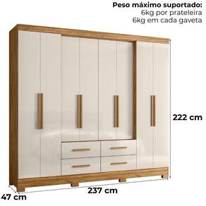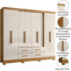 Projetado para atender às necessidades do dia a dia, o Guarda-Roupa Casal San Lorenzo oferece espaço e modernidade. Estrutura em MDP (15/12 mm) e acabamento em pintura UV. Composto por portas com dobradiças metálicas, prateleiras internas, cabideiro interno (alumínio) e gavetas com corrediças telescópicas. Produto com dupla opção de montagem: pés em PVC ou sapatas plásticas (2 mm) conforme a preferência do cliente. Este produto será entregue em 03 volumes.