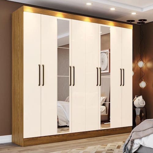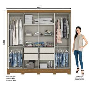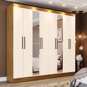 FICHA TECNICA ROUPEIRO: Acabamento: Nas versoes Branco e Off White a pintura e UV e nas versoes Nature e Preto HP a pintura e UV Texturizada Cor Interna: Na versao Branco e Trama Branco e nas versoes Preto HP e Nature/Off White e Trama Escala de Brilho: Nas versoes Branco e Off White e Brilho e nas versoes Preto HP e Nature e Fosco Material do Fundo: MDF Possui Espaco para Vestidos Longos: Sim Possui Ganchos: Nao Possui Iluminacao Led: Nao Possui Maleiro: Nao Possui porta Objetos: Nao Qtd. Portas: 8 Und. Tipo Porta: Bater Material da Porta: MDP Material da Dobradica: Metalica Material do Puxador Porta: ABS Qtd. Gavetas: 4 Und. Material da Gaveta: MDP Material da Corredica: Metalica Material do Puxador Gaveta: Nao Possui, fechamento atraves da propria gaveta Peso Maximo por Gaveta: 3 KGs Possui Organizador de Gaveta: Nao Qtd. Prateleiras: 3 Und. Material da Prateleira: MDP Peso Maximo por Prateleira: 8 KGs Possui pes: 10 Und. Material dos Pes: ABS Altura Pes/Rodapes: 5 Cm Pes Regulaveis: Nao Possui Espelho: Sim Quantidade de Espelhos: 8 Und Medida de Cada Espelho (A x L): 46,5 x 21,5 Cm Possui Vidro: Nao Material do Cabideiro: Madeira Material do Calceiro: Madeira Produto Suporta ate (Kg): 76 Kg Material Principal: MDP Medidas Montado: 220 x 216 x 46,5 Cm Peso Montado: 124 Kg