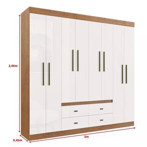 Características: Estrutura em MDF 8 portas Dobradiças metálicas 4 gavetas Corrediças metálicas Puxadores em ABS 9 Prateleiras 3 Cabideiros