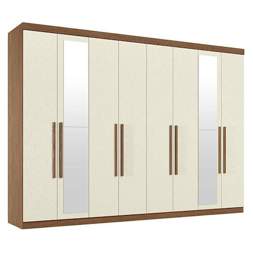Guarda Roupa Casal 8 portas 4 gavetas Master New Jatobá Areia com espelho Acetinado - Santos Andirá