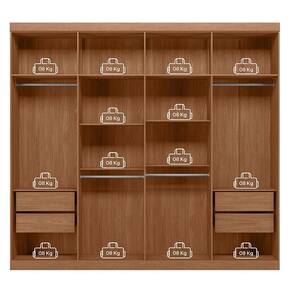 Guarda Roupa Casal 8 portas 4 gavetas Master New Jatobá Areia com espelho: O Master New 8.4 oferece divisão interna pensada para casal: espaço certo para ele e para ela com gavetas que deslizam macio e prateleiras amplas. Acabamento com textura semi-brilho que dá um ar sofisticado ao ambiente.