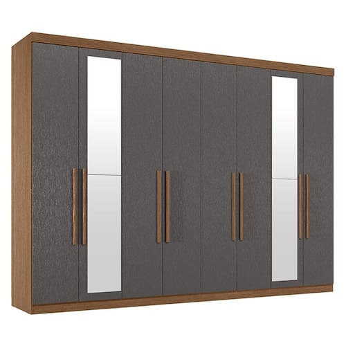 Guarda Roupa Casal 8 portas 4 gavetas Master New Jatobá Grafite com espelho Acetinado - Santos Andirá