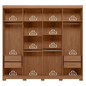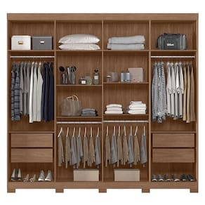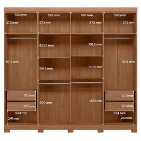 Guarda Roupa Casal 8 portas 4 gavetas Master New Jatobá Areia com pés: O Master New 8.4 oferece divisão interna pensada para casal: espaço certo para ele e para ela com gavetas que deslizam macio e prateleiras amplas. Acabamento com textura semi-brilho que dá um ar sofisticado ao ambiente.