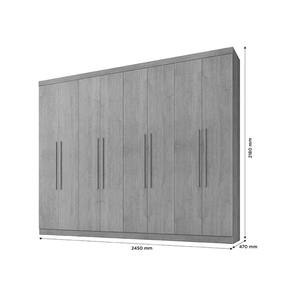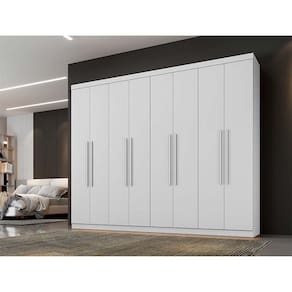 Altura 218 cm Largura 245 cm Profundidade 47 cm Matéria Prima MDP 15 mm Espaço para Sapatos Sim Tipo de Pintura UV Prazo de Garantia 3 meses contra defeitos de fabricação Quantidade de Gavetas 4 Gavetas Tipo de Corrediças Telescópicas Quantidade de Cabideiros 3 Material dos Cabideiros Alumínio Quantidade de Portas 8 Forma de Abertura Abrir Portas Dupla Face Não Portas com Espelhos Não Material do Puxador Madeirado Quantidade de Prateleiras 8 Necessita de Montagem Sim Dica de Montagem Recomendamos que a montagem seja feita por profissional de sua confiança Recomendações de Limpeza Utilizar pano macio seco ou ligeiramente umedecido com água Informações Os objetos que ambientam as fotos não acompanham o produto