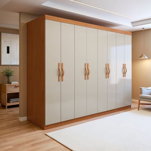 Nosso guarda roupa com 8 portas é ideal para quem busca organização, praticidade e um visual fácil de combinar com diferentes decorações para quarto. Sua estrutura em 100% MDF garante resistência e durabilidade no uso diário. Oferece nichos bem distribuídos e 6 gavetas com corrediças para abertura suave e prática, além de espaço dedicado para sapatos, facilitando a organização completa do vestuário. Os puxadores SoftFeel proporcionam toque confortável agregando ergonomia e sofisticação ao móvel. Espaçoso e perfeito para quem procura organização inteligente e aproveitamento interno.
