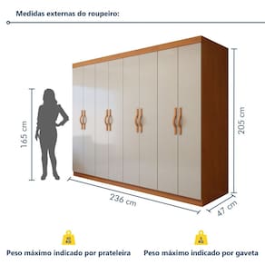 É fácil de limpar? Super. Um pano úmido já o mantém limpo. Acabamento da Prateleira: Pintura Escala de Brilho da Prateleira: Semi-Fosco Possui Cabideiros: Sim Acabamento da Gaveta: Pintura Escala de Brilho da Gaveta: Semi-Fosco Possui Organizador de Gaveta: Não Acabamento da Porta: Pintura UV Escala de Brilho da Porta: Semi-Fosco Material do Puxador da Porta: ABS Ambiente Principal: Quarto codigo_ean: 7900288344977 Complexidade da Montagem: Alta: deve ser montado por um montador especializado Cor: Amêndoa Clean/ Off White Cor da Porta: Off White Cor do Produto: Amêndoa Clean/ Off White Cor do Puxador: Bege Escala de Brilho: Semi-Fosco Espessura da Estrutura (mm): 15 mm Espessura das Portas (mm): 15 mm Espessura das Prateleiras (mm): 15 mm Espessura do Fundo (mm): 12 mm Espessura do Fundo das Gavetas (mm): 2,7 mm Gaveta com Chave: Não Itens Inclusos: 1 Guarda Roupa, Kit Ferragens e Manual de Montagem. Linha ou Coleção: Serenata Manual de Montagem e Instalação: https://product-hub-prd.madeiramadeira.com.br/524732240/documents/9edc8e30-f105-4faa-913c-827b413c6db13400881554117715108715196.pdf Marca: Móveis Lopas Material da Gaveta: MDF Material da Porta: MDF Material da Prateleira: MDF Material Principal: MDF modular: Não Necessita Montagem: Sim Nicho com Cabideiro: Não Origem do Produto: Nacional Peso: 150 kg Peso Máximo por Gaveta: 5 kg Peso Máximo por Prateleira: 10 kg Porta Janelada: Não Possui Calceiros: 02 Possui Espaço para Vestidos Longos: Não Possui Espelho: Não Possui Espelho Interno: Não Possui iluminação: Não Possui Painel de TV: Não Possui Penteadeira: Não Possui Pés: Não Possui Portas: Sim Possui Prateleiras: Sim Produto Montado: Sim Quantidade de Cabideiros: 02 Cabideiros Quantidade de Gavetas: 06 Gavetas Quantidade de Prateleiras: 06 Prateleiras Recomendações de Uso, Manutenção e Limpeza: Uso, Manutenção e Limpeza Limpar Somente Com Pano Macio e Seco, Não Colocar Diretamente Em Incidência da Luz Solar, Não Colocar Em Lugar Úmido. Sistema de Montagem: Parafusos E Minifix. Tipo de Corrediça da Gaveta: Metálica Telescópica Tipo de Dobradiça/Corrediça da Porta: Metálica Tipo de Gaveta: Interna Tipo de Guarda-Roupa: Casal Tipo de Puxador da Gaveta: Não Possui Tipo de Puxador da Porta: Externo
