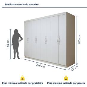 É fácil de limpar? Super. Um pano úmido já o mantém limpo. Acabamento da Prateleira: Pintura Escala de Brilho da Prateleira: Semi-Fosco Possui Cabideiros: Sim Acabamento da Gaveta: Pintura Escala de Brilho da Gaveta: Semi-Fosco Possui Organizador de Gaveta: Não Acabamento da Porta: Pintura UV Escala de Brilho da Porta: Semi-Fosco Material do Puxador da Porta: ABS Ambiente Principal: Quarto codigo_ean: 7900288335678 Complexidade da Montagem: Alta: deve ser montado por um montador especializado Cor: Branco Cor da Porta: Branco Cor do Produto: Branco Cor do Puxador: Branco Escala de Brilho: Semi-Fosco Espessura da Estrutura (mm): 15 mm Espessura das Portas (mm): 15 mm Espessura das Prateleiras (mm): 15 mm Espessura do Fundo (mm): 12 mm Espessura do Fundo das Gavetas (mm): 2,7 mm Gaveta com Chave: Não Itens Inclusos: 1 Guarda-Roupa, Kit Ferragens e Manual de Montagem. Linha ou Coleção: Serenata Manual de Montagem e Instalação: https://product-hub-prd.madeiramadeira.com.br/131498421/documents/aaa4a915-ca2e-4ddf-b3c8-d9f9f450c0dd3400876554117715108337037.pdf Marca: Móveis Lopas Material da Gaveta: MDF Material da Porta: MDF Material da Prateleira: MDF Material Principal: MDF modular: Não Necessita Montagem: Sim Nicho com Cabideiro: Não Origem do Produto: Nacional Peso: 150,27 kg Peso Máximo por Gaveta: 5 kg Peso Máximo por Prateleira: 10 kg Porta Janelada: Não Possui Calceiros: 02 Possui Espaço para Vestidos Longos: Não Possui Espelho: Não Possui Espelho Interno: Não Possui iluminação: Não Possui Painel de TV: Não Possui Penteadeira: Não Possui Pés: Não Possui Portas: Sim Possui Prateleiras: Sim Produto Montado: Sim Quantidade de Cabideiros: 02 Cabideiros Quantidade de Gavetas: 06 Gavetas Quantidade de Prateleiras: 07 Prateleiras Recomendações de Uso, Manutenção e Limpeza: Uso, Manutenção e Limpeza Limpar Somente Com Pano Macio e Seco, Não Colocar Diretamente Em Incidência da Luz Solar, Não Colocar Em Lugar Úmido. Sistema de Montagem: Parafusos E Minifix. Tipo de Corrediça da Gaveta: Metálica Telescópica Tipo de Dobradiça/Corrediça da Porta: Metálica Tipo de Gaveta: Interna Tipo de Guarda-Roupa: Casal Tipo de Puxador da Gaveta: Não Possui Tipo de Puxador da Porta: Externo
