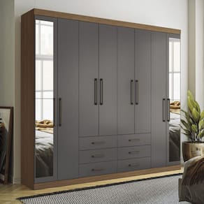 Guarda Roupa Casal 8 Portas 6 Gavetas c/ espelho Havana Master Santos Andirá Um guarda-roupa completo! Com muito espaço para todas as suas roupas. Com 06 amplas gavetas que além de espaçosas, deslizam sobre corrediças metálicas, facilitando o abrir e fechar de todos os dias. Possui espaço interno privilegiado com 04 cabideiros/calceiros em alumínio, para pendurar as roupas com organização e qualidade, puxadores em ABS, deixando o produto muito moderno, e 10 amplas prateleiras para guardar as roupas que precisam ser dobradas. Características:08 Portas com dobradiças metálicas 10 Prateleiras 04 cabideiros em alumínio 06 Gavetas com corrediças metálicas Amplo maleiro Puxadores em ABS Dimensões:Altura: 217,6cmLargura: 238,8 cmProfundidade: 46,3 cmPeso: 145,00Kg Medidas da gaveta: Altura: 10,1 cm Largura: 53,3 cm Profundidade: 35 cm Manutenção: Não limpar com álcool ou qualquer outro produto químico, utilize somente pano seco ou levemente umedecido.Garantia de Fábrica: 03 Meses (90 dias)