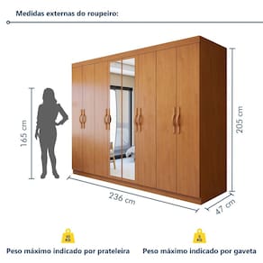 Nosso guarda roupa com 8 portas e espelhos é ideal para quem busca organização, praticidade e um visual que combina com várias decorações para quarto. Sua estrutura 100% MDF garante resistência e durabilidade no uso diário. Oferece nichos bem distribuídos e 6 gavetas com corrediças para abertura suave e prática, além de espaço dedicado para sapatos, facilitando a organização completa do vestuário. Os puxadores SoftFeel proporcionam toque confortável, agregando ergonomia e sofisticação ao móvel. Espaçoso e perfeito para quem procura organização inteligente e aproveitamento interno.