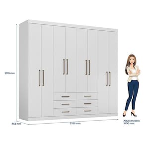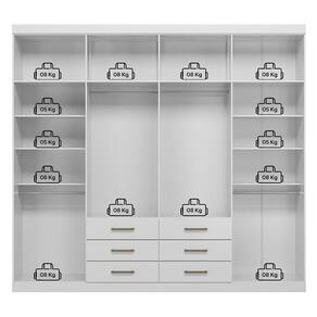 Guarda Roupa Casal 8 portas 6 gavetas Master Branco: O roupeiro Master 8 portas é para quem precisa de armazenamento completo: seis gavetas espaçosas, quatro cabideiros e muitas prateleiras para deixar tudo no lugar. Acabamento branco brilhante que ilumina o quarto e facilita aorganização do dia a dia.