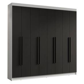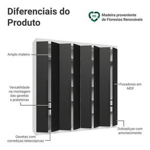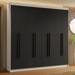 Possui uma pintura de alta resistência, que garante durabilidade e um acabamento impecável por muito mais tempo. A estrutura é na cor Branca, as portas e os puxadores em Preto. Os puxadores de 80 cm, fabricados em MDF, são um dos grandes diferenciais, trazendo um design alongado e moderno.