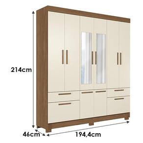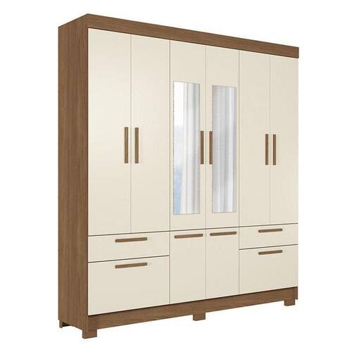 Guarda Roupa Casal 8 portas Curitiba com espelho Jatobá Areia - Santos Andirá