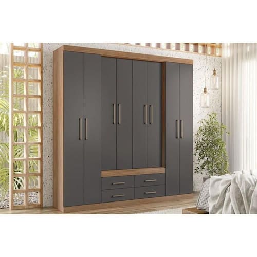 Guarda Roupa Casal 8 Portas e 4 Gavetas Nápoles Jatoba/Grafitte - Santos Andirá
