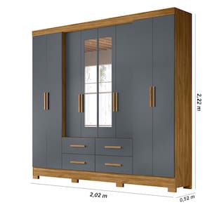 Guarda Roupa Casal 8 portas espelho 4 gavetas San Lorenzo Plus - Cinza