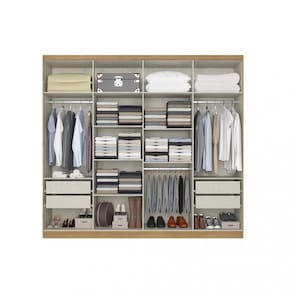 Conheca o Guarda Roupa Casal 8 Portas Milan THB! Com design contemporaneo, e composto por 8 portas, com elegantes puxadores em MDF. Seu interno possui uma excelente divisao para casal, com cabideiros, gavetas e prateleiras separadas. Ainda possui espaco para colocar sapatos e um amplo maleiro interligado, proporcionando espaco completo para acomodar os seus pertences de maneira organizada.