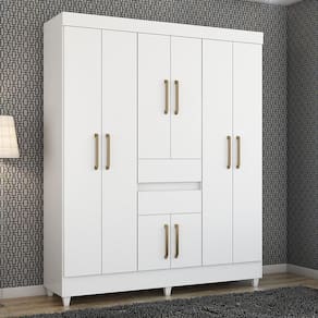 O guarda-roupa 8 portas Munique Demóbile possui o espaço que você precisa para organizar o seu dormitório e guardar os seus pertences de forma planejada. Suas 8 portas revelam toda essa capacidade de acomodação preparados para trazer a praticidade no seu dia a dia. As 2 gavetas externas com corrediças metálicas desse roupeiro são espaçosas e com qualidade capaz de trazer a leveza no movimento desse compartimento. Os 3 cabideiros em alumínio são resistentes, deixam esse guarda-roupa com gavetas mais organizado e facilitam a arrumação das suas roupas e pertences. Além disso, esse guarda-roupa moderno possui 5 nichos para guardar seus objetos e acessórios. A estrutura em madeira MDP é firme e capaz de proporcionar um lindo acabamento a esse guarda-roupa espaçoso. A pintura U.V é resistente contra os efeitos do tempo e facilitam no momento da limpeza do seu produto. Tudo isso faz do guarda-roupa Munique Demóbile ideal para embelezar o seu ambiente e trazer mais praticidade na organização dos seus pertences. NA Cor: Branco