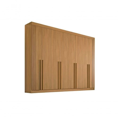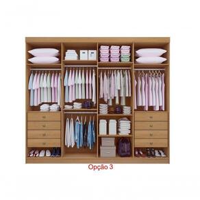 Particularidades do guarda-roupa: Características: - MDF; - Corrediça telescópica 40cm; - Profundidade da gaveta 40cm; - Abertura total da gaveta; - Suporte cabide metálico; - Puxadores de madeira; - Produzido com chapa de 15mm e 25mm;