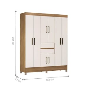 Produzido em MDP. Acompanha cabideiros em madeira, puxadores em plástico ABS na cor bronze, pés em PVC