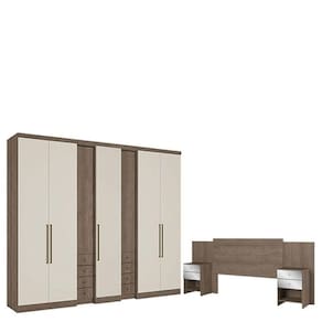 Guarda Roupa Casal Absolut Clear 7 Portas Rustic Off White E Cabeceira Com Mesas De Cabeceira Formosa Glass Rustic -thb Guarda Roupa Casal Absolut Clear 7 Portas Rustic Off White e Cabeceira com Mesas de Cabeceira Formosa Glass Rustic -THBConjunto perfeito para deixar seu quarto elegante e funcional! O Guarda-Roupa Casal Absolut Clear 7 Portas em Rustic/Off White Acetinado oferece amplo espaço e acabamento sofisticado, enquanto a Cabeceira Casal Formosa Glass com Mesas de Cabeceira completa o ambiente com praticidade e charme. Ideal para um quarto moderno, organizado e acolhedor, garantindo um acabamento durável e um visual sofisticado para seu quarto. Juntos, esses móveis criam um quarto completo, moderno e funcional ? perfeito para quem busca beleza, organização e conforto em um único conjunto. Confira e aproveite já!Guarda Roupa Casal Absolut Clear 7 Portas Rustic Off White Acetinado - THBCaracterísticas Técnicas:- Desenvolvido em MDP 15 mm- Pintura com acabamento UV Fosco- 7 Portas- Dobradiças metálicas - 8 gavetas com corrediças metálicas - 4 Puxadores de alumínio com ponteiras em PVC- 1 Puxador perfil de 26 mm em alumínio - 10 puxadores ponto em ABS- Cabideiros metálicos - Design modernoDimensões:Altura: 233 cmLargura: 288 cmProfundidade: 55 cmCabeceira Casal com Mesas de Cabeceira Formosa Glass Rustic Acetinado - THBCaracterísticas Técnicas:- Desenvolvida em MDP 15 mm - Pintura com acabamento UV Fosco- Frente das gavetas com espelho - Ideal para colchões de 138 a 158 cm (não incluso)- Corrediças metálicas- Design modernoDimensões:Altura: 116 cmLargura: 276 cmProfundidade: 39 cmInformações importantes:- Nossas cargas possuem , portanto, no ato da , confira a quantidade de volumes recebida, e também o estado da embalagem. Se houver qualquer inconsistência, não assine o de ;- O armazenamento do produto no de é de responsabilidade do comprador. Evite apoiar o produto na vertical, bem como evite áreas que deixem o produto exposto a chuva ou umidade excessiva;- Pequenas variações de tonalidade são possíveis, em razão da diferença de resolução da tela onde o anúncio está sendo visualizado. Se notar diferença expressiva, comunicar a empresa antes de efetuar a montagem;- O de contratado contempla a até a primeira área coberta ou portaria, não sendo coberto o ato de subir escadas/elevadores ou adentrar nas residências;- Não nos responsabilizamos pela montagem, desmontagem ou instalação do produto. Marca: Não Informado