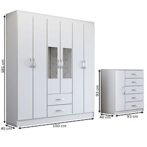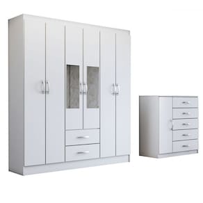 O(a) Guarda-Roupa Casal Adam 6 Portas 2 Gavetas e Espelho com Cômoda 1 Porta 5 Gavetas Branco - Loja é produzido em MDP na escala de brilho Brilhante, e possui um grau de dificuldade de montagem: Médio.