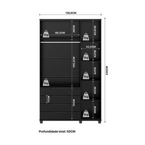 Guarda-Roupa Casal Allen 3 Portas 4 Gavetas Preto