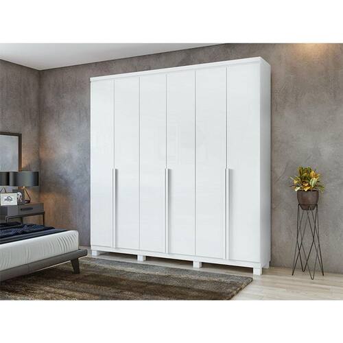 Guarda Roupa Casal Ambiente Alonzo 6 Portas Branco Brilho com Pés - Lopas