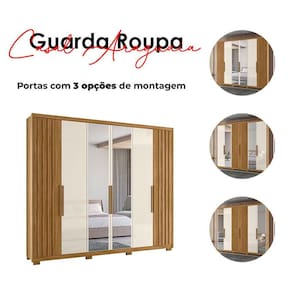 Está montando seu quarto? Apresentamos para você este belo guarda roupa da linha Araguaia. Possuindo seis portas, sendo duas com espelho e outras duas com detalhes ripados em MDF, proporciona um design moderno e sofisticado. O destaque é a três opções na hora da montagem das portas, se adaptando ao seu gosto. Os puxadores em MDF garantem um acabamento elegante e harmonioso. O espaço interno bem distribuído, conta com quatro gavetas equipadas com corrediças telescópicas, proporcionando um deslizamento suave. Além disso, conta com pés em PVC oferecendo mais estabilidade. Fabricado pela Moval, é desenvolvido em 100% MDP de alta qualidade, sendo uma excelente opção para acomodar suas roupas e acessórios, unindo praticidade e sofisticação para o quarto do casal, aproveite!
