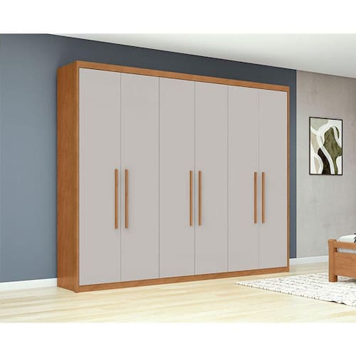 Guarda Roupa Casal Ambiente Áries 6 Portas Amêndoa Clean Off White - Lopas