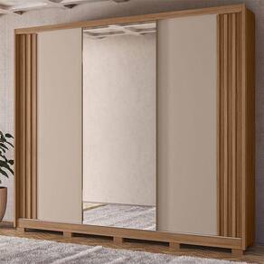 Guarda Roupa Casal Ambiente Arizona 3 Portas Carvalho Fendi com Espelho - Moval