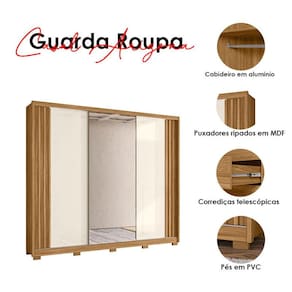 Guarda Roupa Casal Ambiente Arizona 3 Portas Freijó Off White com Espelho - Moval