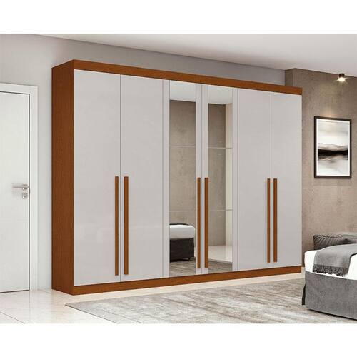 Guarda Roupa Casal Ambiente Bertha 6 Portas Frassino Off White com Espelho - Lopas