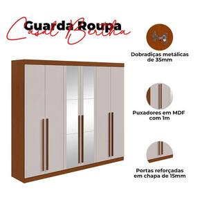 Começou a montar seu quarto? Então apresentamos para você este belo guarda roupa da linha Bertha. Seu design moderno conta com seis portas, sendo as duas centrais com espelho. Os puxadores em MDF dão um toque sofisticado. No seu interior bem distribuído, possui quatro gavetas equipadas com corrediças telescópicas, além de ter um espaço exclusivo para seus calçados. Fabricado pela Lopas, é desenvolvido em 100% MDP, oferecendo um acabamento impecável e estrutura robusta. Combinando praticidade e estilo é ideal para compor o quarto do casal com sofisticação e organização, aproveite!