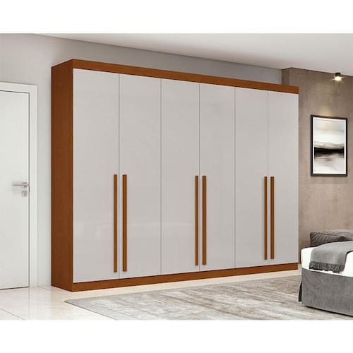 Começou a montar seu quarto? Então apresentamos para você este belo guarda roupa da linha Bertha. Conta com seis portas e puxadores em MDF, dando um design elegante e moderno. Seu ótimo espaço interno inclui quatro gavetas equipados com corrediças telescópicas. Além disso, com espaço exclusivo para calçados, permitindo uma melhor organização. Fabricado pela Lopas, é desenvolvido em 100% MDP com acabamentos refinados e uma estrutura robusta. Unindo praticidade e estilo é a escolha perfeita para transformar o quarto do casal, aproveite!