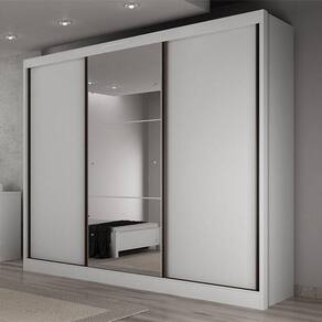 Guarda Roupa Casal Ambiente Duna 3 Portas 4 Gavetas Neve com Espelho Horizonte