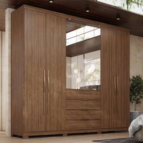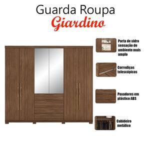 Guarda Roupa Casal Ambiente Giardino 6 Portas Nogueira Touch com Espelho e Pés - Demóbile