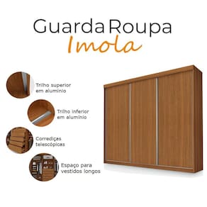 Guarda Roupa Casal Ambiente Ímola 3 Portas de Correr Carvalho New - Luapa