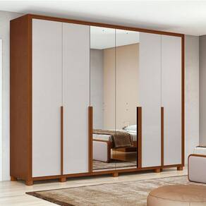 Guarda Roupa Casal Imperatore 3 Portas Frassino Off White com Espelho e Pés – Lopas