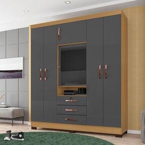 Guarda Roupa Casal Ambiente Imperatriz Carvalho Americano Grafite - Incorplac