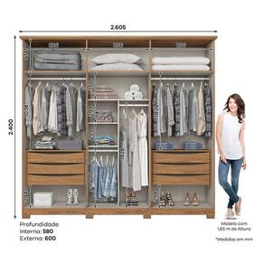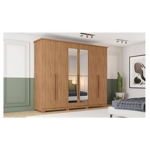 Guarda Roupa Casal Ambiente Leblon 6 Portas Nature com Espelho - Henn